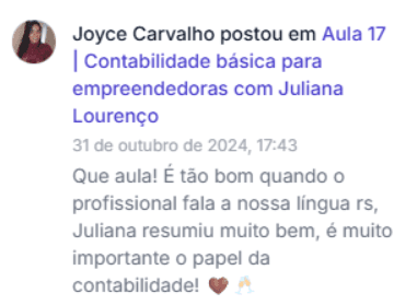 Nessa aula exclusiva com Juliana Lourenço, contadora e Treinadora de Autoliderança Feminina, você vai desvendar os segredos que toda empresária deve saber acerca da contabilidade de sua empresa.