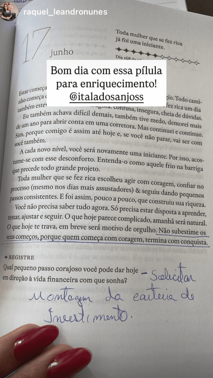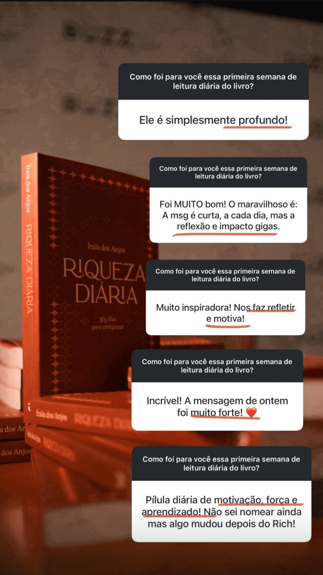 Em 365 mensagens, Ítala dos Anjos, criadora da Multiplique Educação Financeira, compartilha aprendizados profundos que reuniu após mais de uma década trilhando, na prática, o caminho da liberdade financeira.