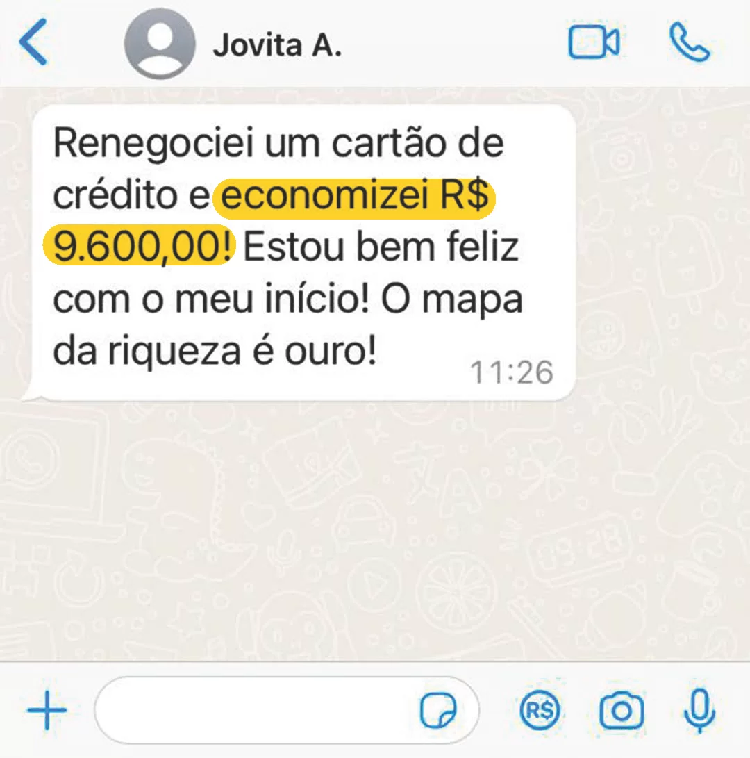 Com uma linguagem fácil e direta ao ponto, o MAPA DA RIQUEZA 🧭 tem uma metodologia acessível e validada por mais de 12.000 mulheres em 38 países - que saíram das dívidas, investiram seu dinheiro e hoje tem a vida dos sonhos.