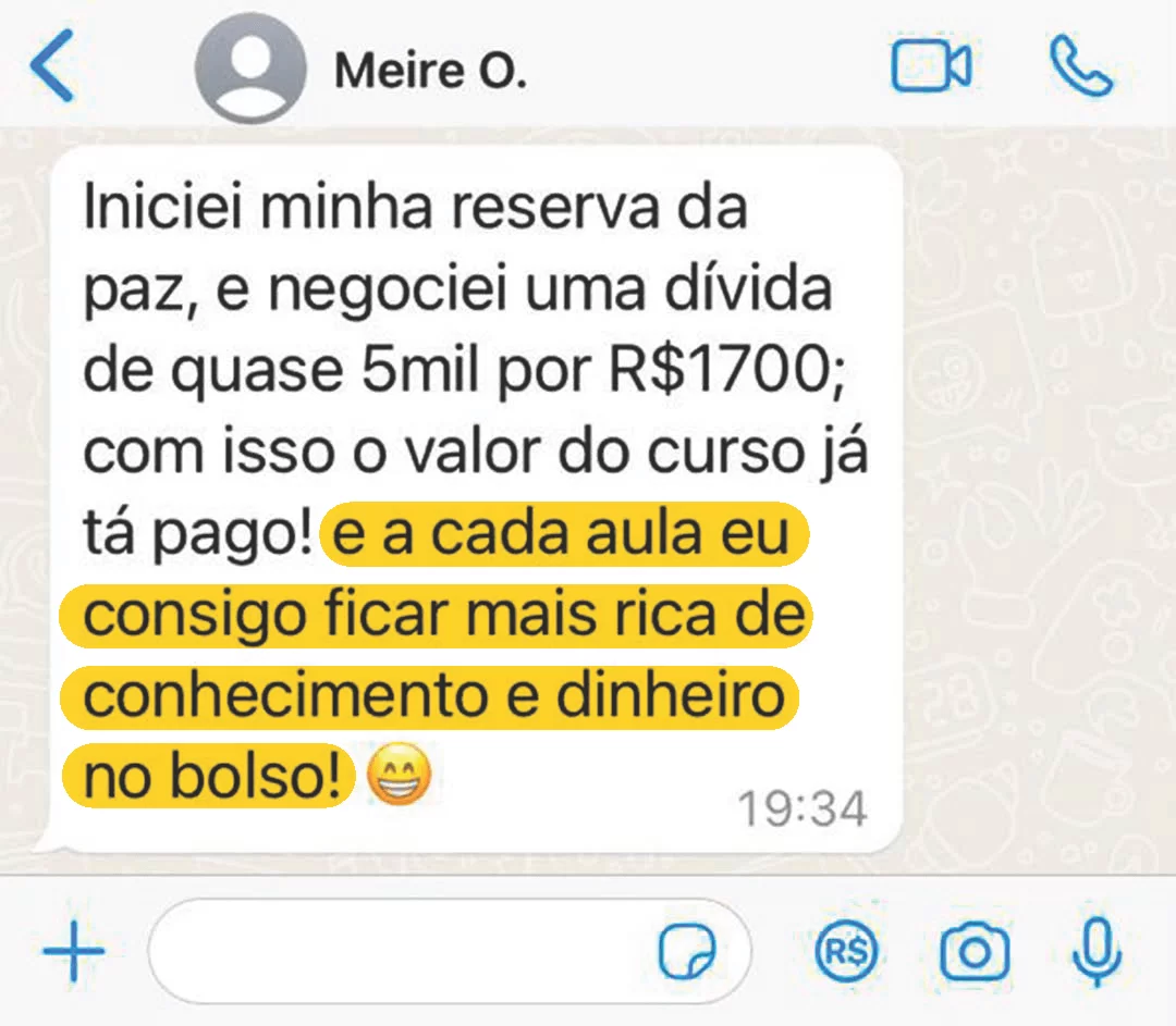Dentro do curso Mapa da Riqueza, você poderá contar com nosso S.O.S a aluna.