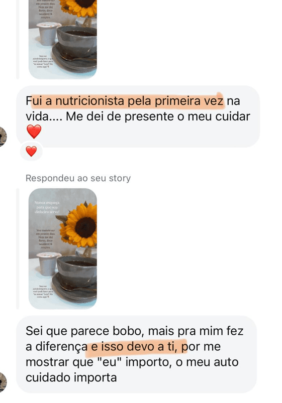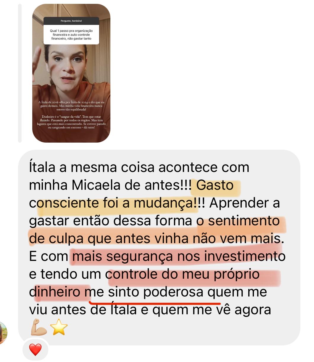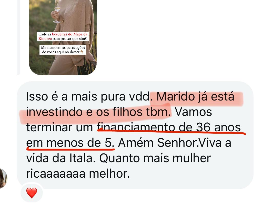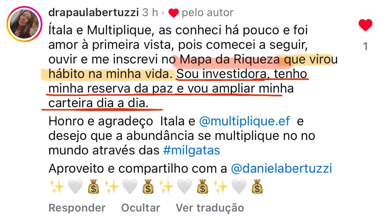"Cada fase do Mapa da Riqueza é um pedaço da minha própria história. Eu vivi cada uma delas. Se eu consegui, e se +12.000 mulheres depois de mim conseguiram, você também consegue."