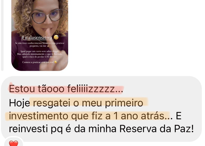 "Sou investidora, tenho minha reserva da paz e vou ampliar minha carteira dia a dia."