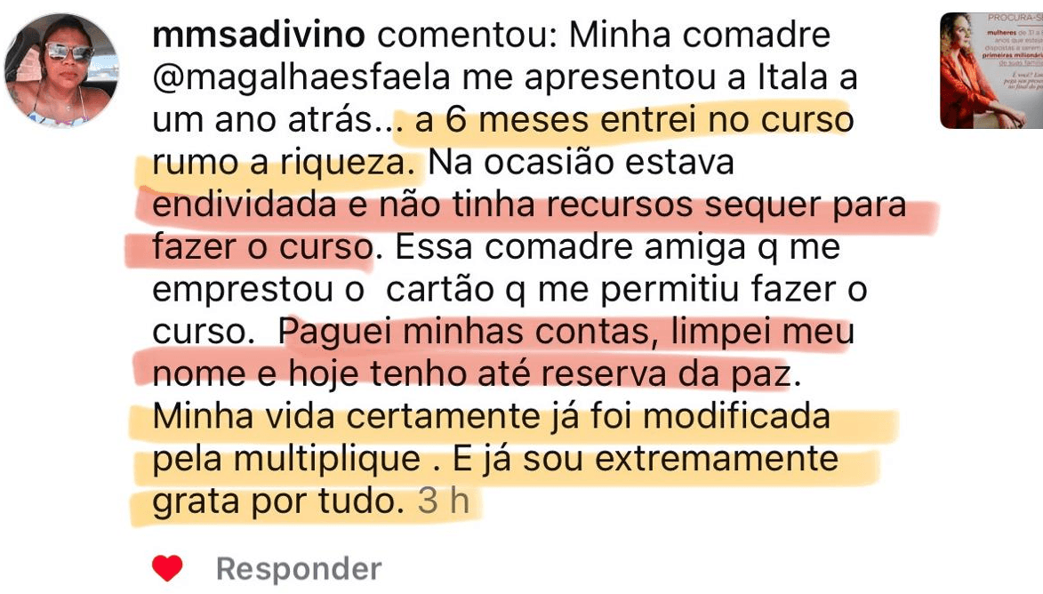 "Quitei todas as minhas dívidas, hoje no Multiplique estou aprendendo a gerir e investir é o que temos que fazer"
